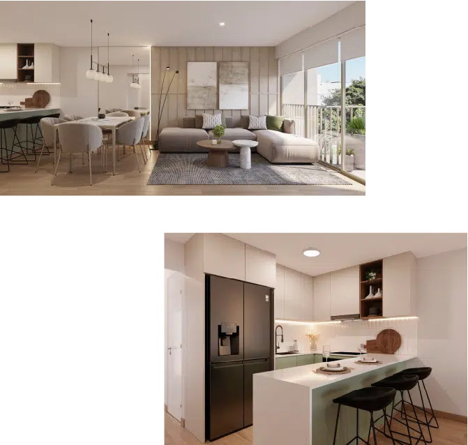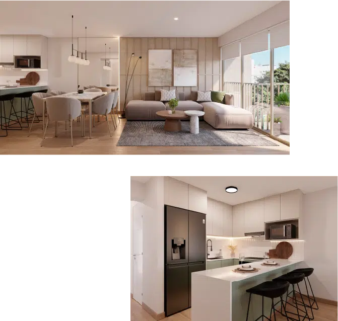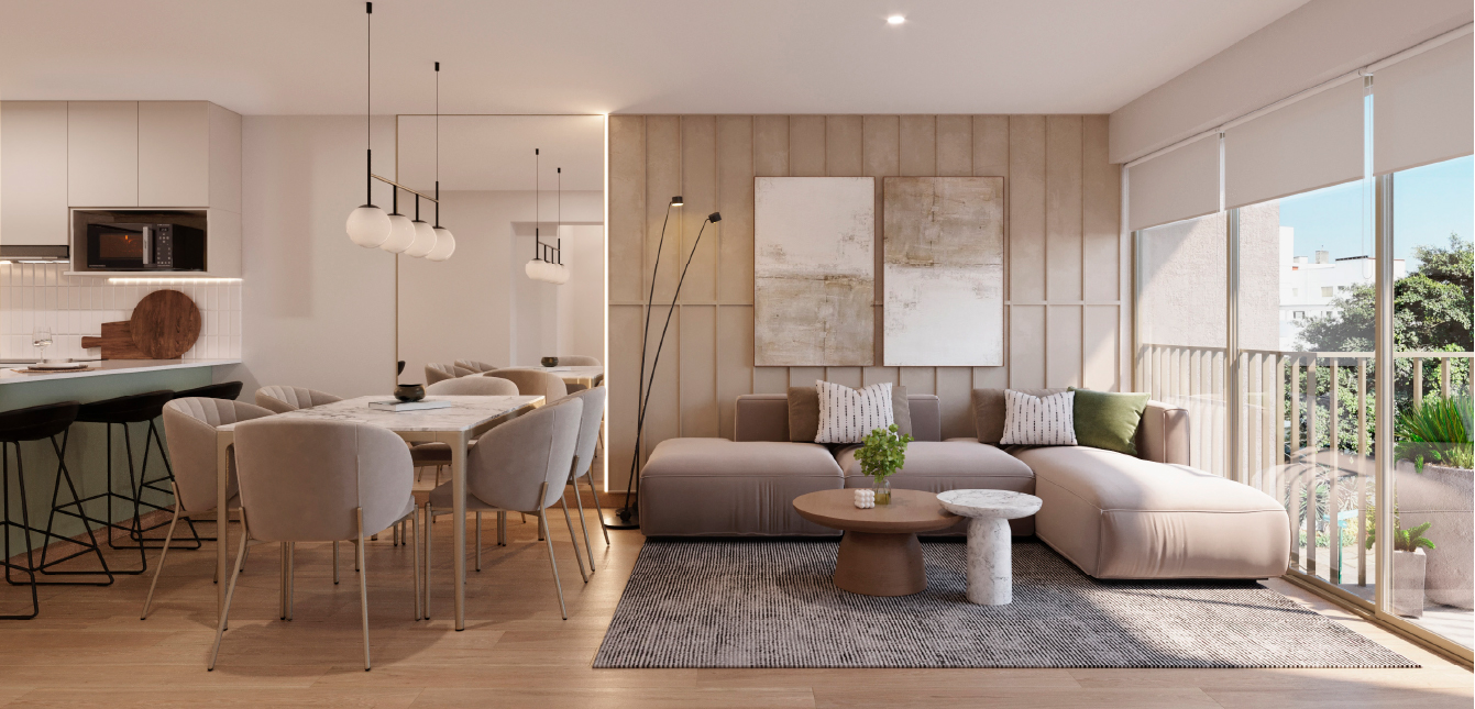 Departamentos de 3 dormitorios desde 81 m², con espacios funcionales, iluminación natural y acabados modernos que reflejan un estilo de vida contemporáneo.